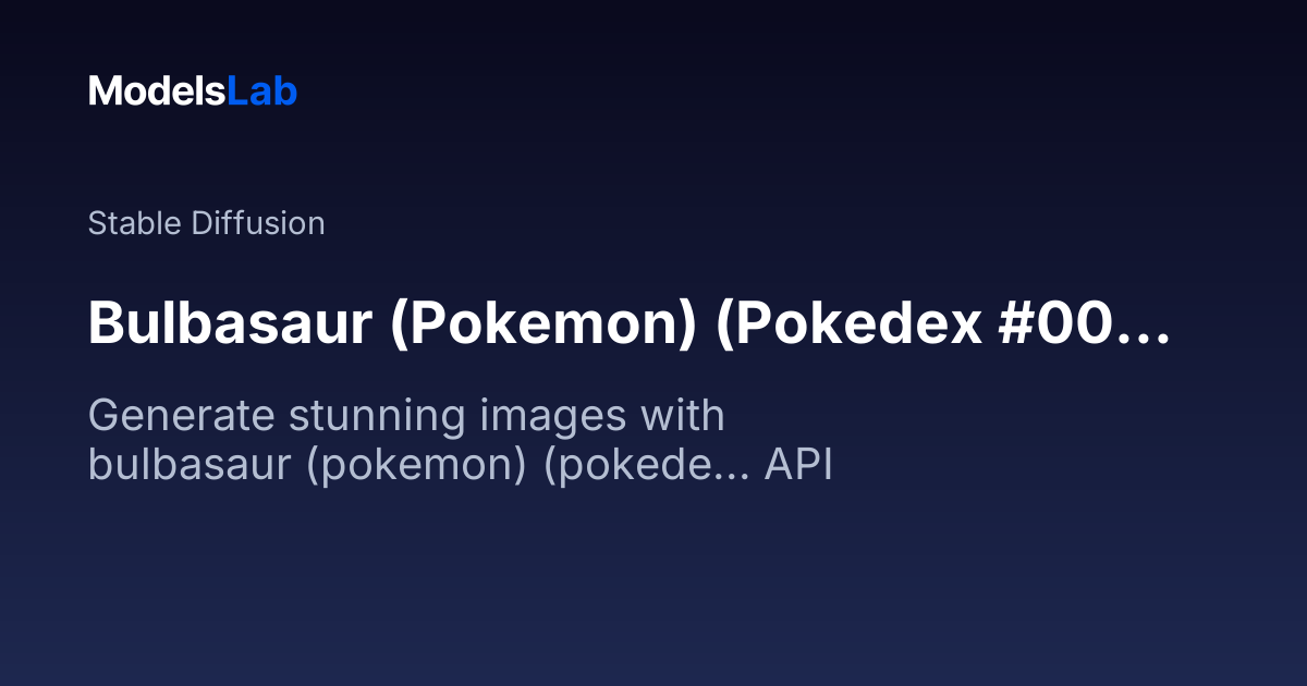 by ModelsLabbulbasaur-pokemon-pokedex-0001-illustrious-pony-v1-0Weight: 0.8Trigger: Bulbasaur_Pokemon <-- Same as the Lora file name, isn't that easy to remember?Extra prompts: none Trained on 44 images